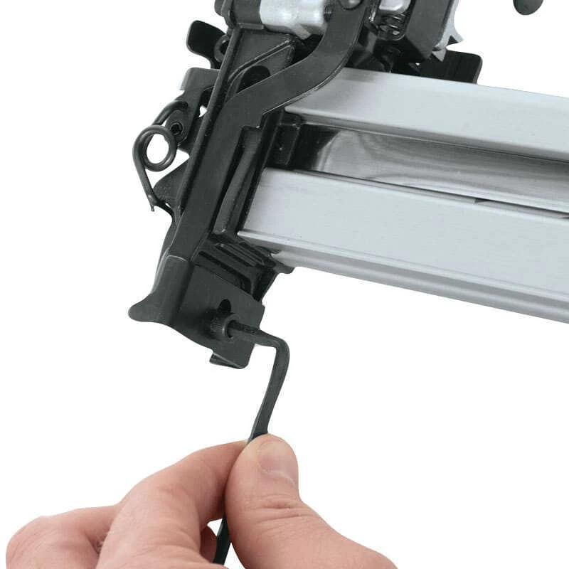 Les clous coincés sont facilement dégagés en ouvrant le verrou à came à dégagement rapide sur l’assemblage du nez. L’AT2550A a une taille compacte et ne pèse que 2,3 kg pour une utilisation toute la journée.