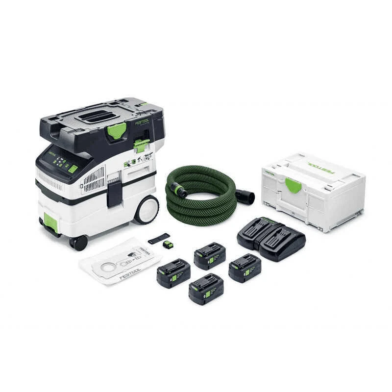 Découvrez le dernier système d’aspiration Festool CTMC MIDI I-Plus 36V associé au set énergie 4 batteries et 1 chargeur double, le partenaire idéal pour tenir votre atelier ou chantier loin de la poussière. Extrêmement mobile et compact, il vous sera possible de l’emmener absolument partout. L’aspirateur CTMC MIDI est parfaitement adapté pour les poussières de catégorie M (≥ 0,1 mg/m3 et < 1mg/m3).