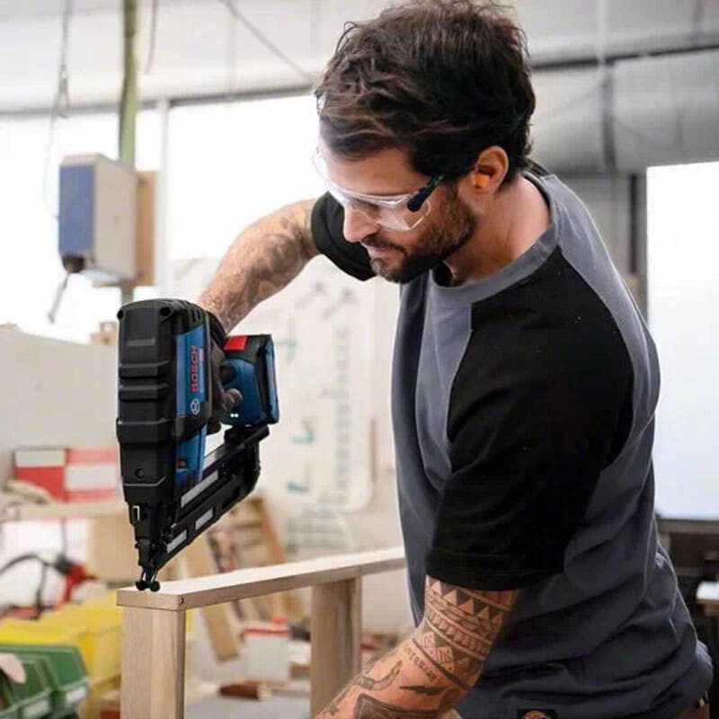 Pour finir, ce cloueur 18V est le choix idéal pour les travaux d’ajustement sur des plinthes, encadrements de fenêtres et de portes, cimaises, escaliers et profilés en bois tendre (p. ex. pin), en bois dur (p. ex. chêne, érable, bouleau) et en matériaux composites. Elle est compatible avec toutes les batteries et tous les chargeurs 18 V de Bosch Professional (Professional 18V System).