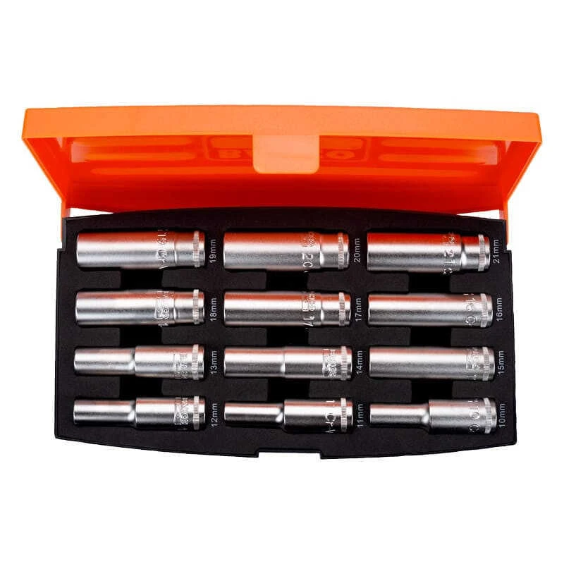 - Douilles longues 6 pans 1/2 » métrique, 10, 11, 12, 13, 14, 15, 16, 17, 18, 19, 20 et 21 mm