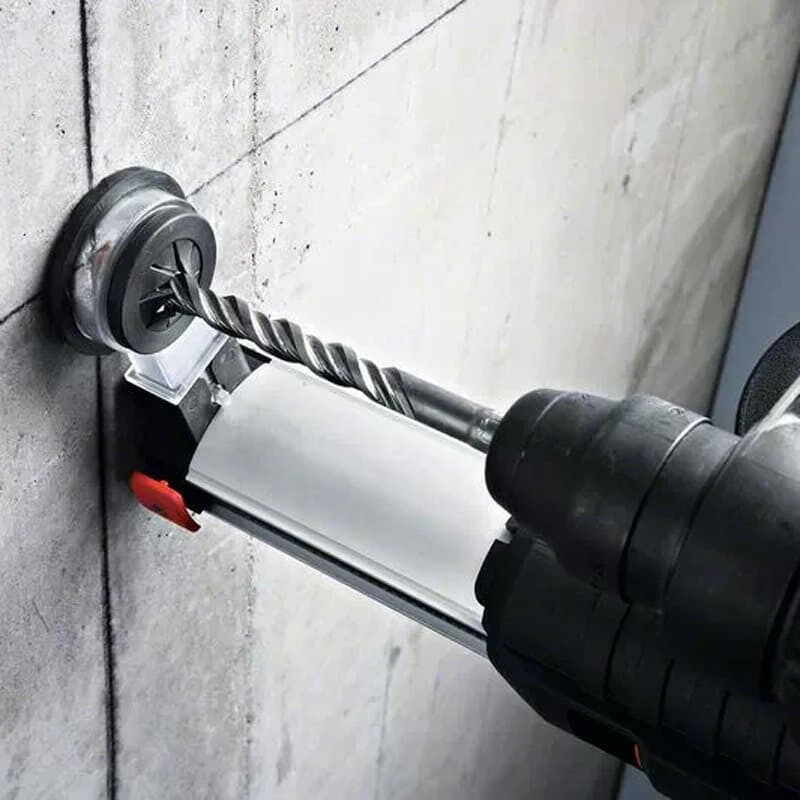 - Jeu d’adaptateurs pour aspirer la poussière lors de travaux avec des couronnes-trépans (jusqu’à 68 mm) – aussi utilisable avec un aspirateur externe