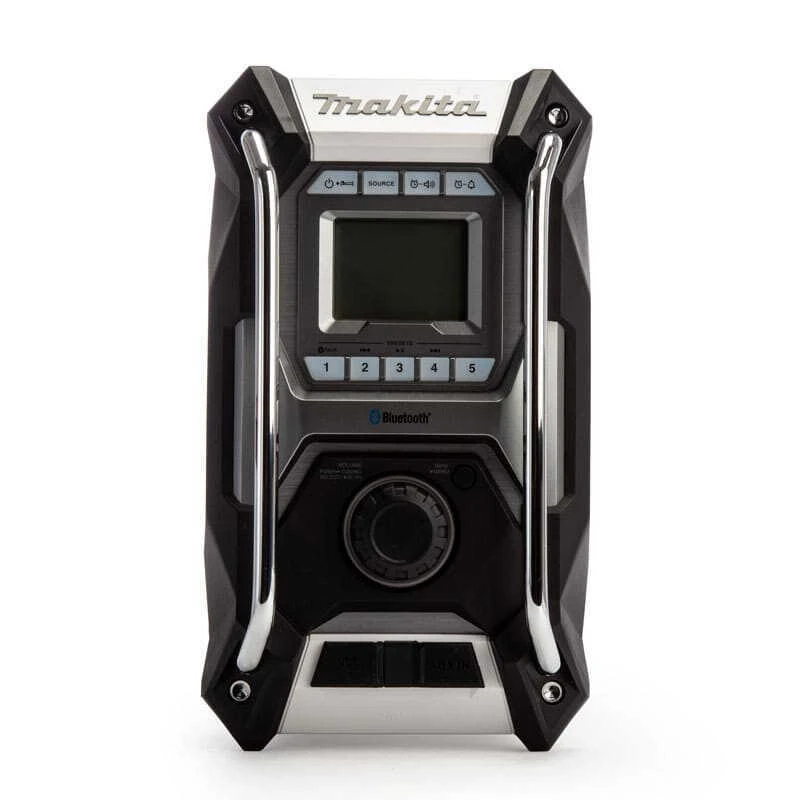 Découvrez la radio de chantier sur batterie de la marque Makita. Profitez de son système stéréo à 2 haut-parleurs et de son autonomie jusqu’à 27.5 heures avec une batterie 40 V Vmax XGT Li-Ion 4.0 Ah. Le modèle MR002GZ01 est une radio de chantier équipée de Bluetooth classe 2 et peut-être alimenté par des batteries Li-Ion Makita et a été développé sur la base d’une DMR108.