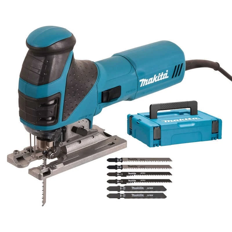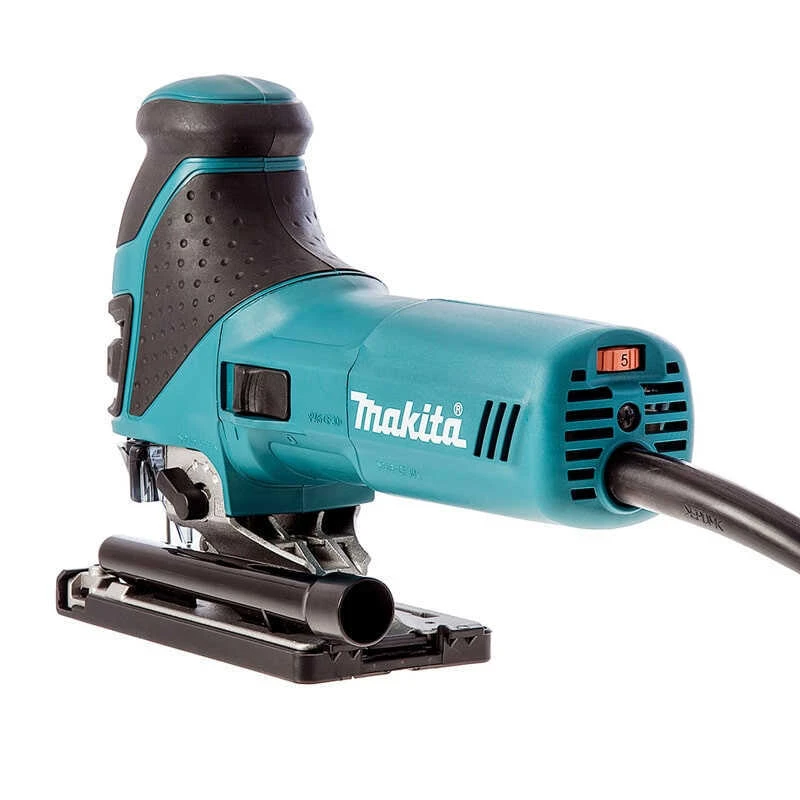 La scie sauteuse Makita 4351FCTJ est maniable et performante avec ses 5 plages de réglages de vitesse permettant un travail plus précis sur différents matériaux. Le système de changement de lame est sans outils, rapide et surtout résistant. Les découpes dans les angles sont là encore précises avec l’axe de coupe à profil carré.