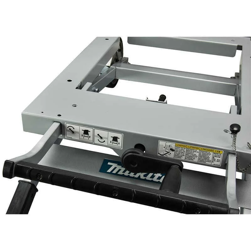 Par ailleurs, le support peut être réglé en hauteur afin de s’adapter à différentes tailles d’utilisateurs mais également de faciliter l’utilisation de la scie sur table. Le support Makita dispose des pieds qui peuvent être repliés pour un rangement plus facile et une utilisation dans des espaces étroits. De plus, il dispose d’un système de verrouillage rapide qui permet de fixer la scie sur table en quelques secondes sur le support.