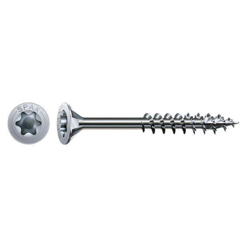 Les vis SPAX sont également dotées d’une tête centrant et d’une tête fraisée de type « Torx » appelé T-STAR, ce qui les rend parfaites pour une utilisation avec des embouts SPAX. Les têtes fraisées offrent une surface de contact plus large pour une meilleure transmission de la force de serrage, tandis que la tête centrant permet un positionnement précis de la vis avant vissage.